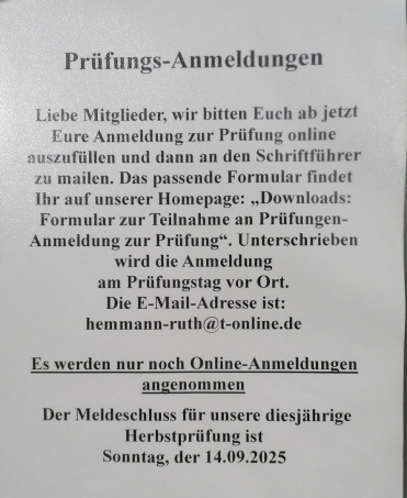 Wir freuten uns sehr, sechs Fremdstarter auf unserem Platz begrüßen zu dürfen. Ein großer Dank geht an das Organisationsteam für die zeitintensive Vorbereitung und die reibungslose Durchführung des Prüfungstages, an das Kantinenteam für die Bewirtung aller Prüflinge und Zuschauer sowie an unseren Leistungsrichter Ingo Leidolt, der wie immer fair und sachkundig geprüft hat.