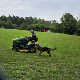 Ein besonderes Dankeschön geht auch an die IBGH-Gruppe, die kurz vor der Prüfung nicht nur den Platz, sondern das gesamte Vereinsheim auf Vordermann gebracht hat. Beispielhaft sei hier unser Walter genannt, der beim Rasenmähen von seiner Schäferhündin Juhna streng überwacht wurde ... :D