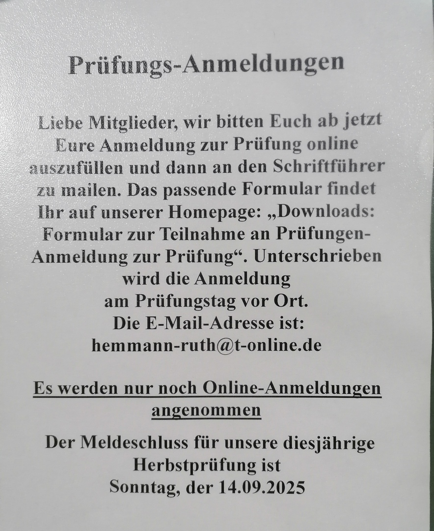 Bitte für die Anmeldung zur Herbstprüfung beachten: