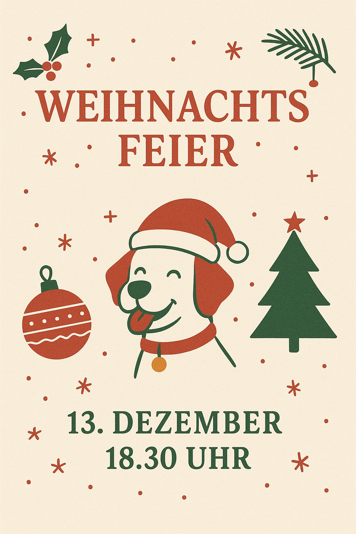 unsere diesjährige Weihnachtsfeier findet am Samstag, dem 13. Dezember, um 18:30 Uhr statt. Es wird wieder ein leckeres Essen in unserem festlich geschmückten Vereinsheim geben. Über ein mitgebrachtes Dessert würden wir uns natürlich auch freuen. Alle, die möchten, können auch wichteln. :)