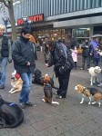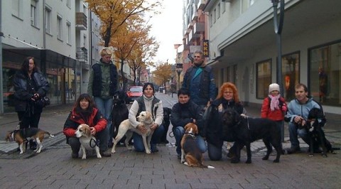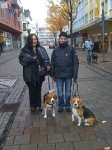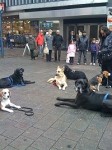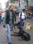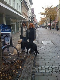 Dann gings in die Fussgängerzone. Alle Uebungen wie Platz und bleib, Abrufen durch einen Gasse, Sitz aus der B ewegung haben wir an