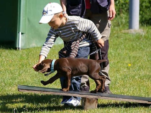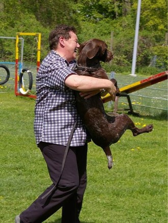Hundeführer " Da geht mein Hund nicht rüber". Das Kommando hiess " Lauf zu, schau nicht zurück, das klappt" und es hat geklappt. Die Freude war gross. Weils so schön war, gleich nochmal. Alle Hunde