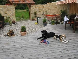 Montse Koschar mit Alix und Ernst Trapp mit Debby.