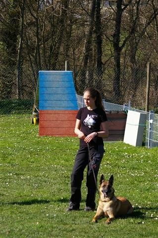 Bei Nicole war die 1. Übung leider nicht so toll, der Fynn wollte nicht alleine, ohne Frauchen im Platz bleiben, stand auf und suchte sie, das gab dann gleich als erstes eine 0.