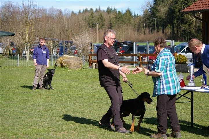 Aber gerade bei so einer schlechten Vorlage, kommt es auf den Hundeführer drauf an, wie man seinen Hund wieder motiviert und ihn durch eine ganze Prüfung führen kann und dann noch ein „Vorzüglich“ erreicht. Klasse Nicole !!!!