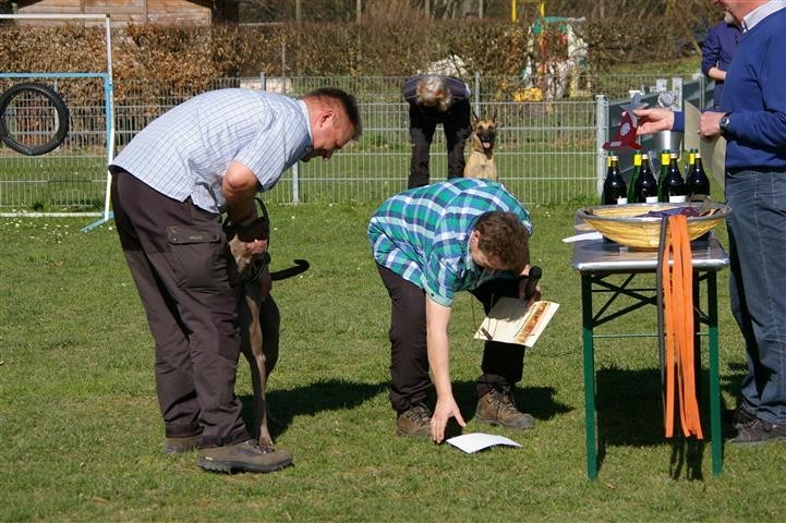 Jasmin Villringer mit Chiwa haben in der Klasse 2 ein vorzüglich mit 276 Punkten erreicht und starten nun in der Klasse 3. Die kleine Chiwa hat eine Fussarbeit vorlegt, da blieb manchem der Mund offen, es gab angemessene 10 Punkte. Für mich war die Übung Geruchsunterscheidung auch eine sehr tolle Leistung und wieder hat sich gezeigt, wenn man konsequent und beharrlich trainiert, sieht man halt irgendwann sein verdientes Ergebnis.