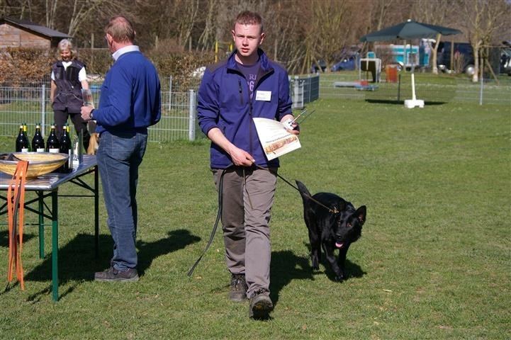 Sie werden wir in Zukunft in Klasse 1 sehen. Bei Andrea war die erste Übung eigentlich noch schlimmer als bei Nicole, denn der Hund daneben stand auf und interessierte sich sehr für Joy. Die Uebung wurde abgebrochen und sie durfte neu anfangen. Wieder ist eine gute Hundeführerin gefragt, die ihren Hund dann nach so einem Vorfall gut durch die Prüfung führen kann. Und wie man an den Punkten sieht, Andrea Du hast das Klasse gemeistert.