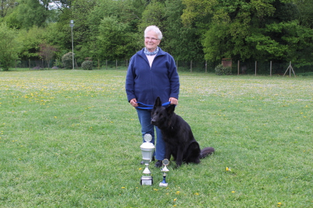 Unsere Ursula Stähle mit ihrer gerade mal 17-monatigen Hündin Paska zeigte eine hochkonzentrierte Unterordnung, die der Prüfer nur loben konnte. So erreichten die beiden wohlverdient den Tagessieg.