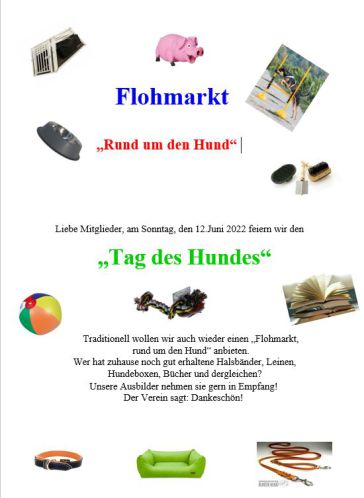 Auch haben wir dieses Jahr nochmals einen Flohmarkt organisiert. Es war beeindruckend wieviele Artikel, von unseren Mitgliedern gespendet, wieder zusammen kamen. Der Erlös des Flohmarktes wird an TASSO e. V. gespendet.