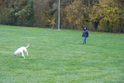 Bei Sonnenschein und windigen Verhältnissen zeigte er uns, wie man eine Übungsstunde abwechslungsreich gestalten und dabei trotzdem auf die unterschiedlichen Bedürfnisse der einzelnen Hunde eingehen kann.