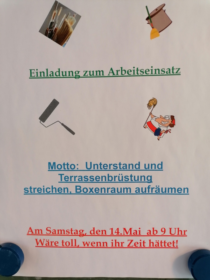 Ein großes Dankeschön an unsere fleißigen Helfer vom letzten Arbeitseinsatz. :) Vorallem auch an unseren Platzwart, der gerade zu dieser Jahreszeit stundenlang mit Rasenmähen beschäftigt ist:
