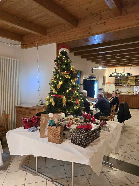 Päckchennummer gezogen hatte, konnten die zahlreichen kleinen Überraschungspakete vom wunderbar weihnachtlich geschmückten Gabentisch abgeholt werden.